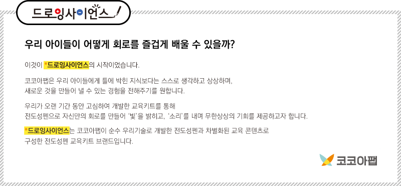 드로잉사이언스는 키트를 활용한 교육 뿐 아니라 펜으로 그린 회로와