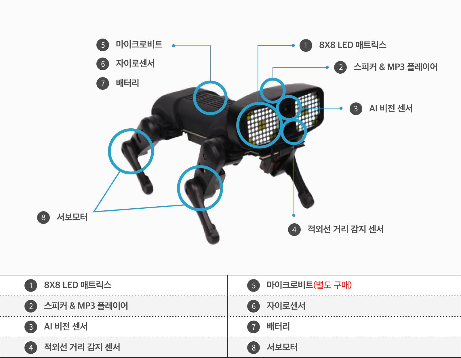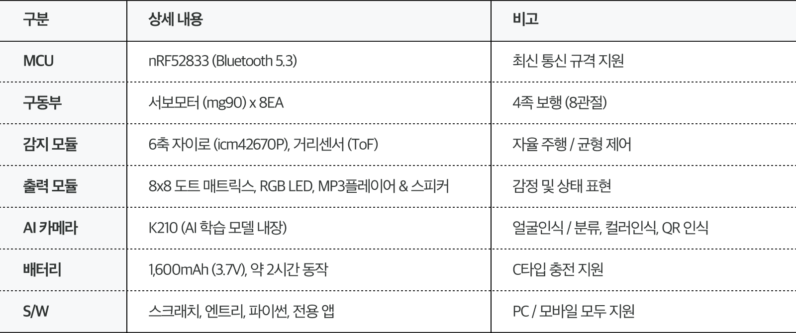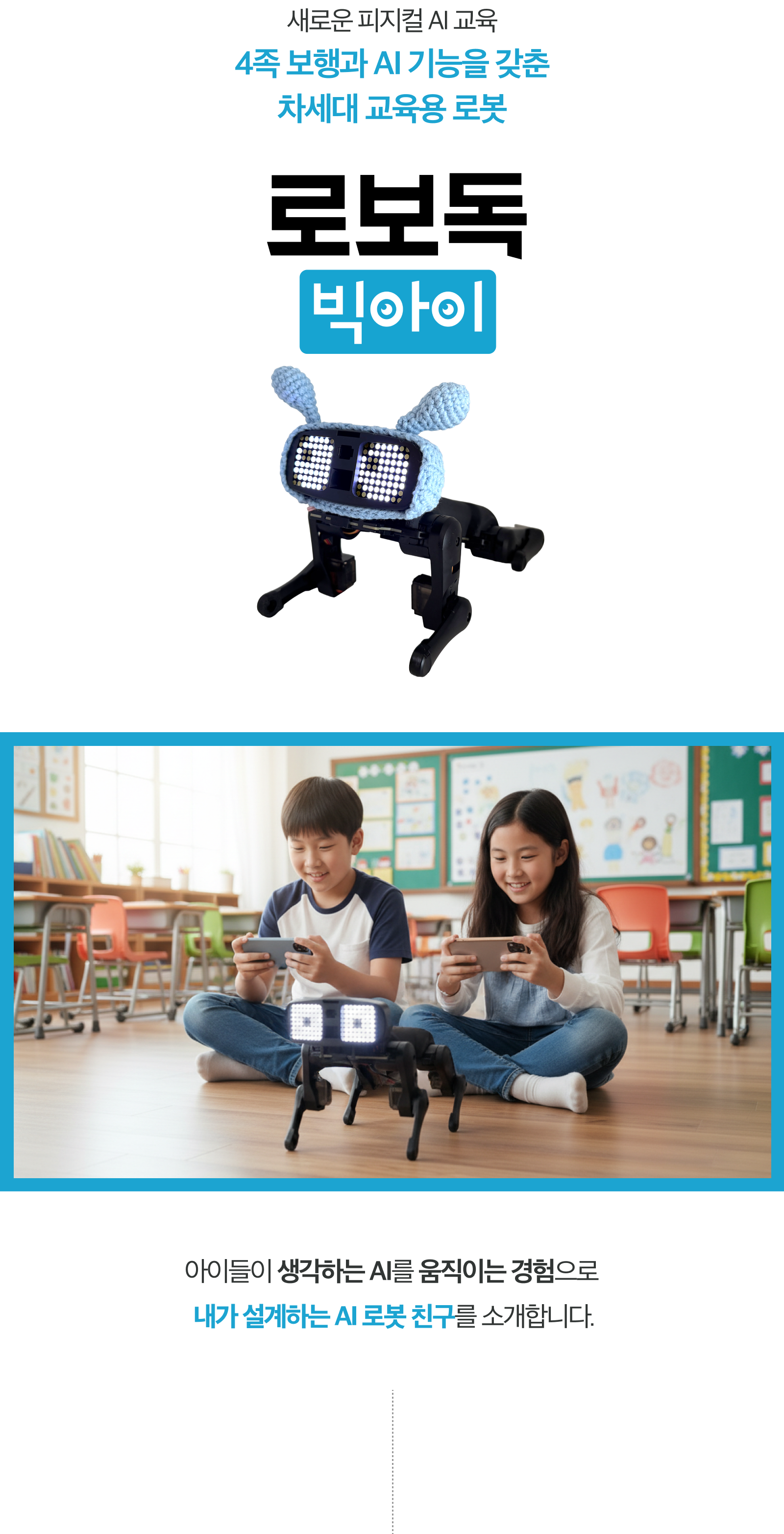 4족 보행 시스템과 AI학습기능을 갖춘 교육용 로봇으로,