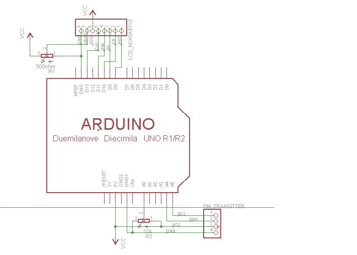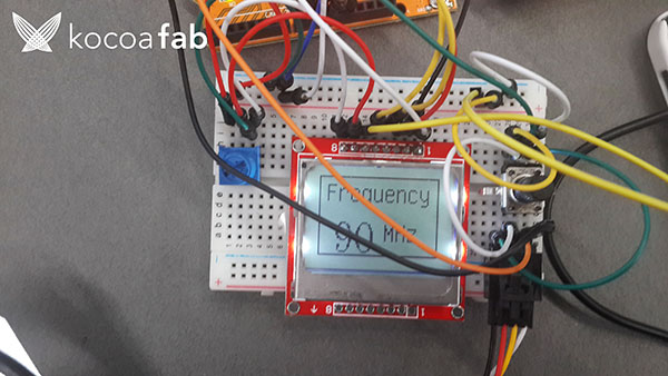 송출 모듈와 연결된 5110LCD 와 가변저항을 통해 대역폭을 설정하고 확인할수 있습니다.