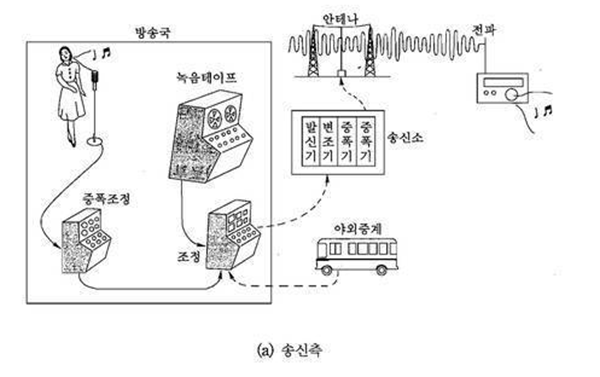 방송국측의 마이크로폰으로부터 음성에 비례한 파형의 전압이 발생되는데