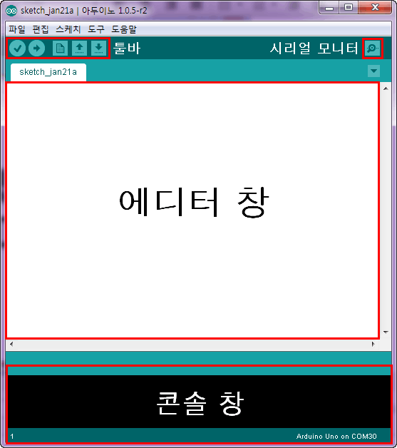 스케치는 다음과 같은 창의 구조를 가집니다.